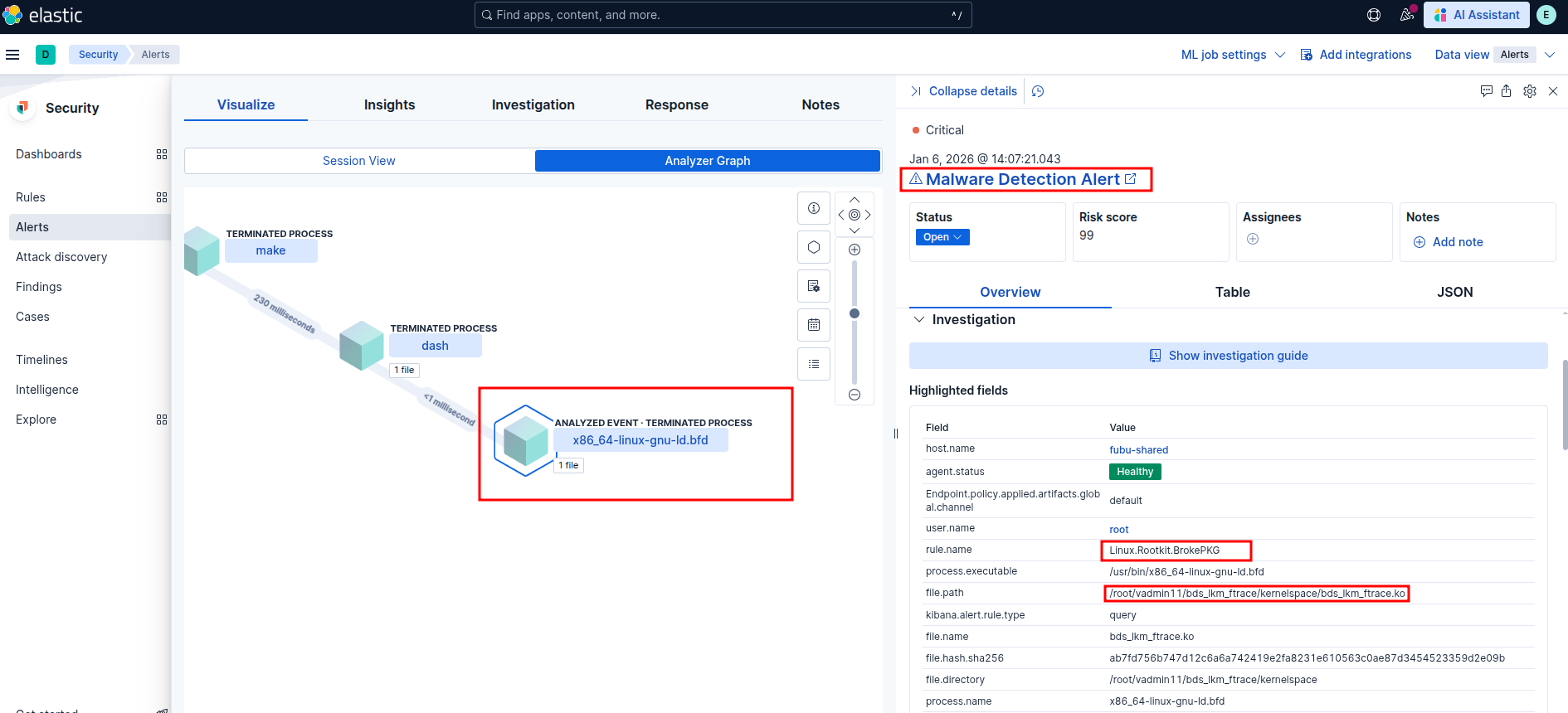 EDR-T6161 - This test installs a kernel-space rootkit that uses ftrace hooking. bds_lkm_ftrace is an advanced Linux Loadable Kernel Module (LKM) rootkit developed by BlueDragonSecurity (Antonius). Targeting Linux kernels 5.x and 6.x on x86_64 architectures, it leverages the kernel's ftrace framework for syscall hooking, avoiding traditional syscall table modifications for greater stealth. Key features include: