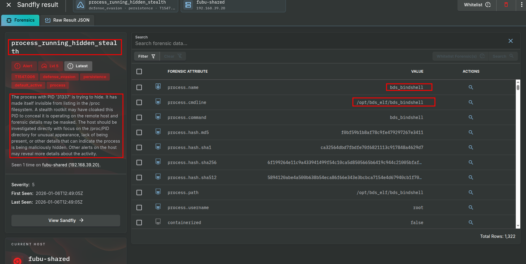 Stealth Capabilities: Hides files and directories prefixed with bds_, conceals processes (e.g., bind/reverse shell instances), and masks network ports.