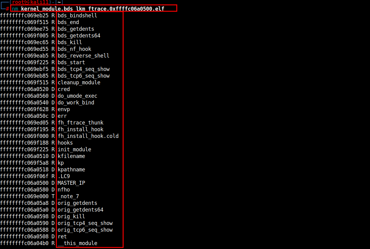 # nm kernel_module.bds_lkm_ftrace.0xffffc06a0500.elf