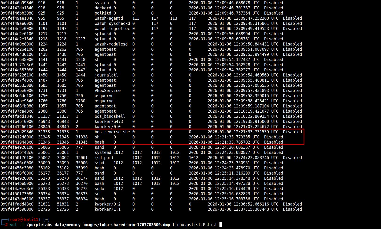 # vol -f /purplelabs_data/memory_images/fubu-shared-mem-1767703XXX.dmp linux.pslist.PsList Volatility3 Framework: