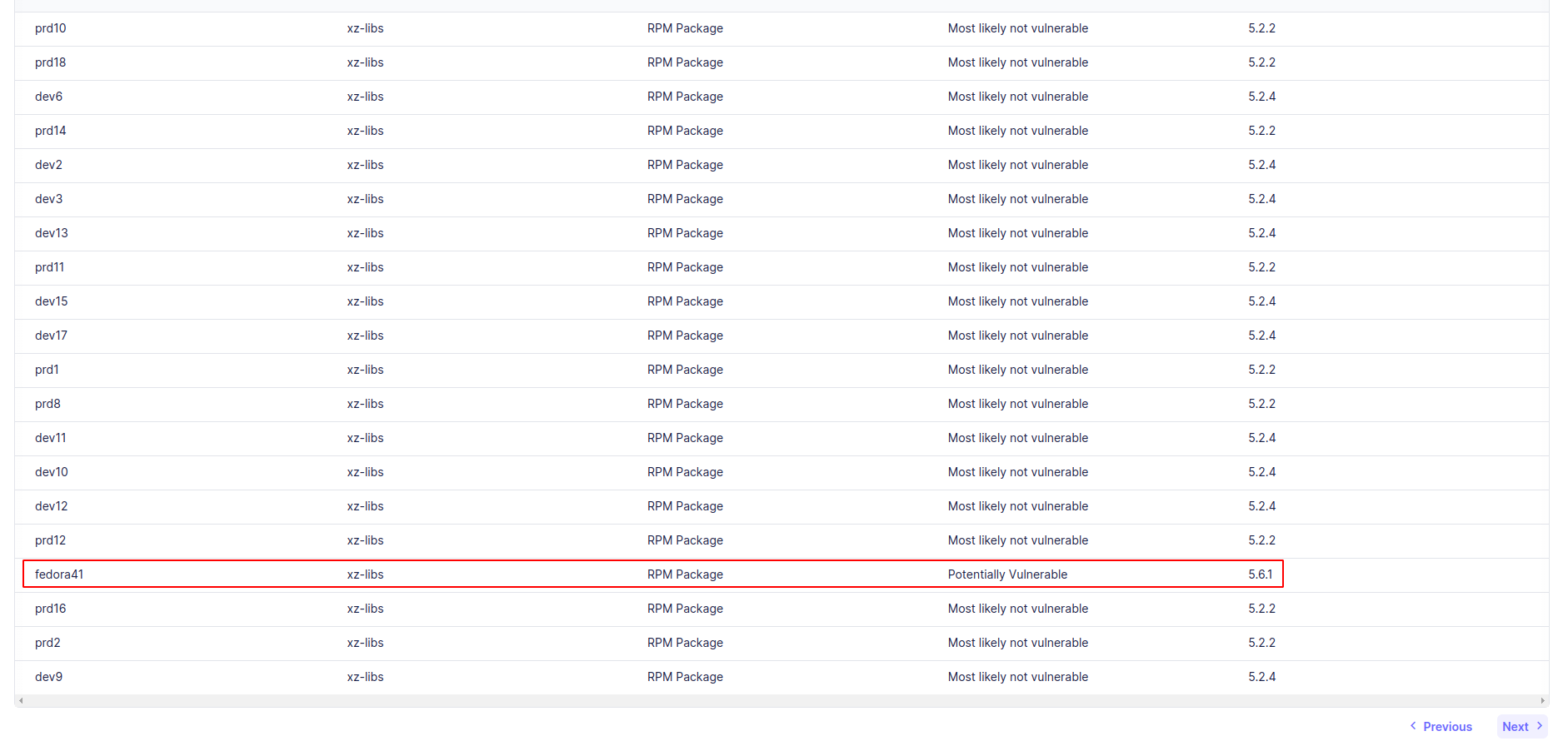 3. As you can find in the code, we are querying deb package and rpm package tables for installed vulnerable xz-utils, xz-libs or liblzma packages in versions 5.6.0 and 5.6.1. After a few seconds, you should get at least one hit: