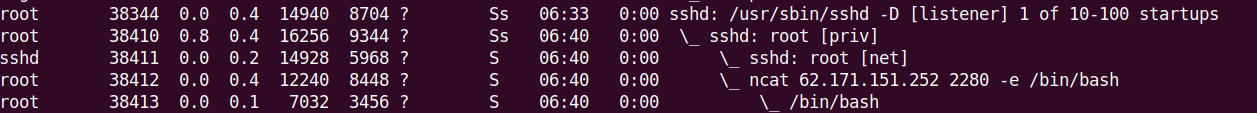 12. On the targeted Fedora 41 VM, check the backdoor process tree. It looks different from a normal sshd process tree: