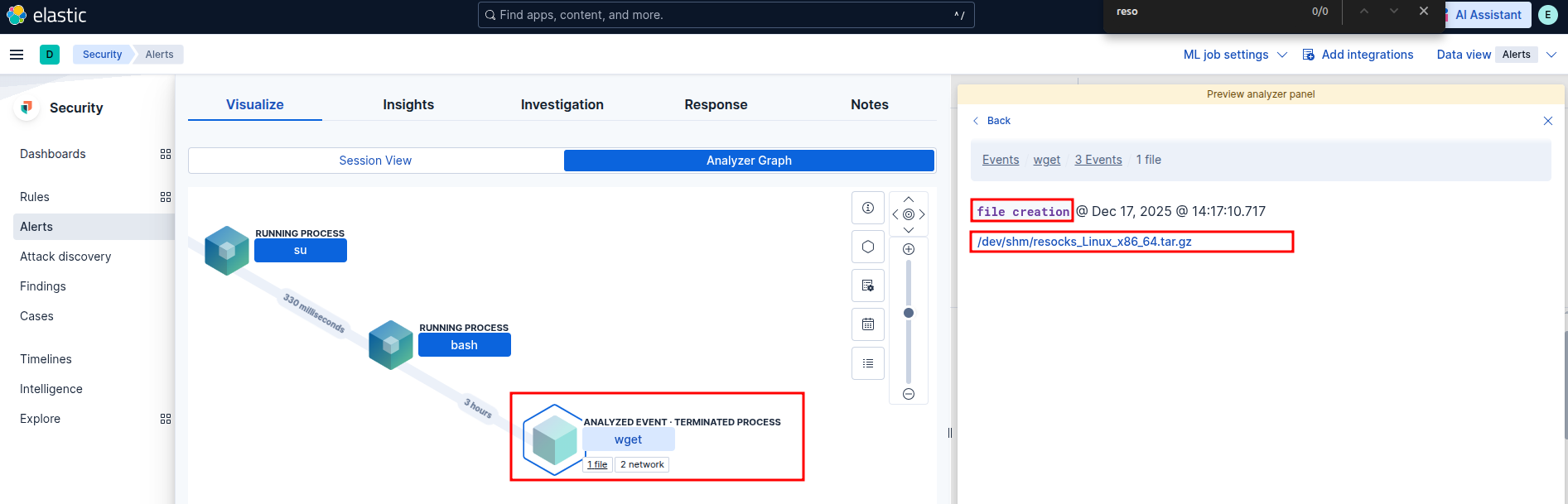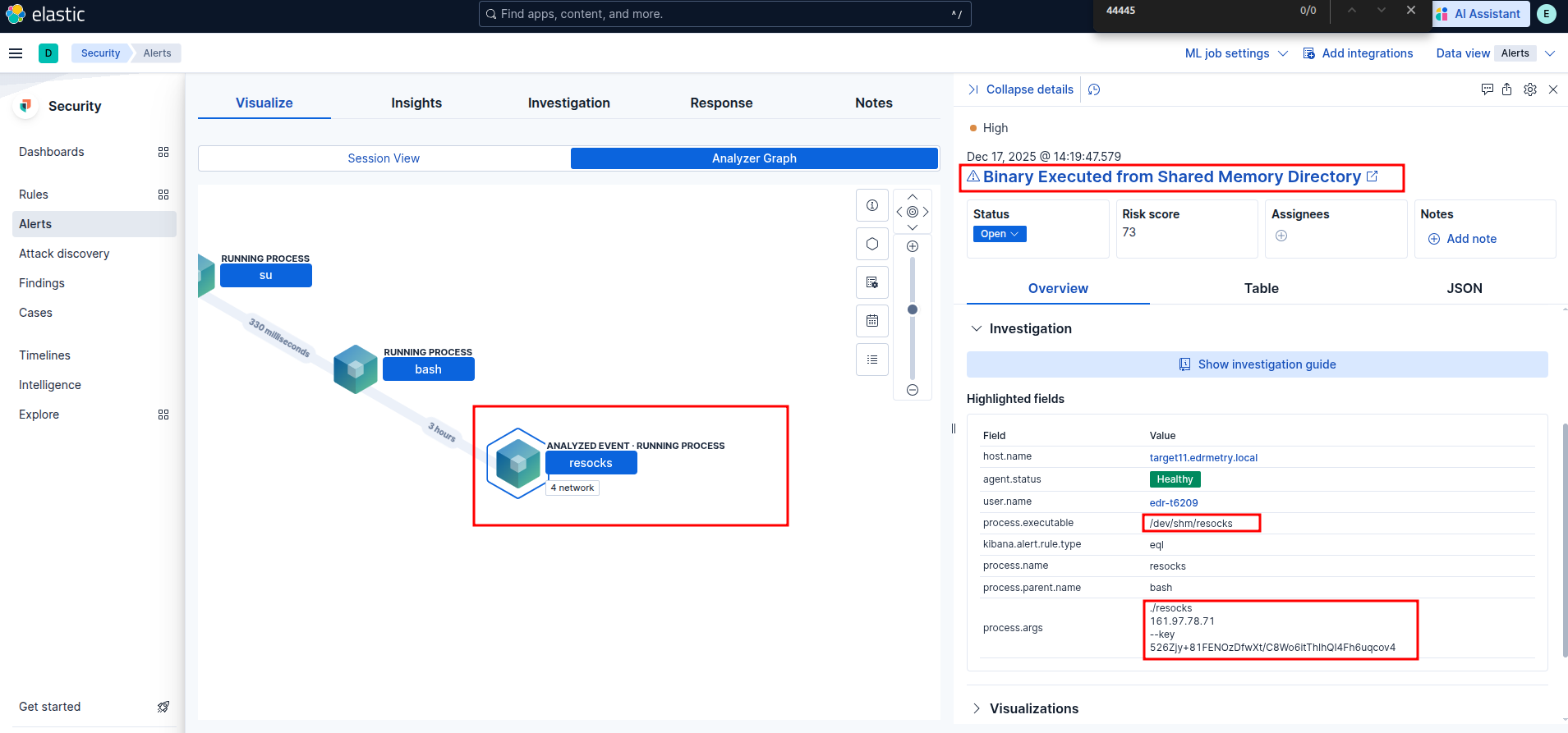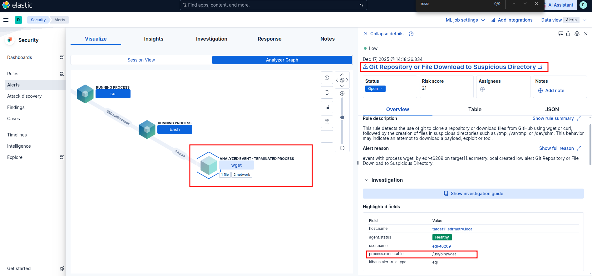 index=unix falco host="targetX.edrmetry.local" "File below a monitored directory opened for writing"Elastic Security:
