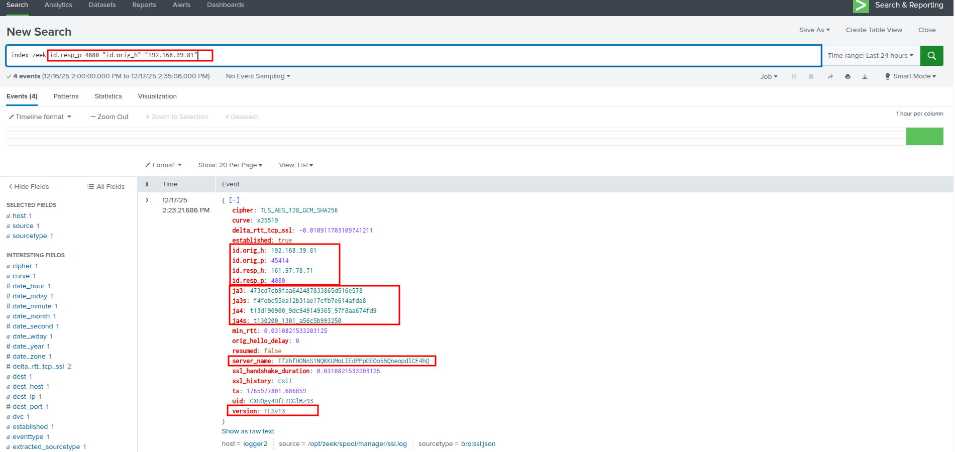 index=zeek id.resp_p=4080 "id.orig_h"="TARGET_X_INTERNAL_IP"Splunk - Suricata: